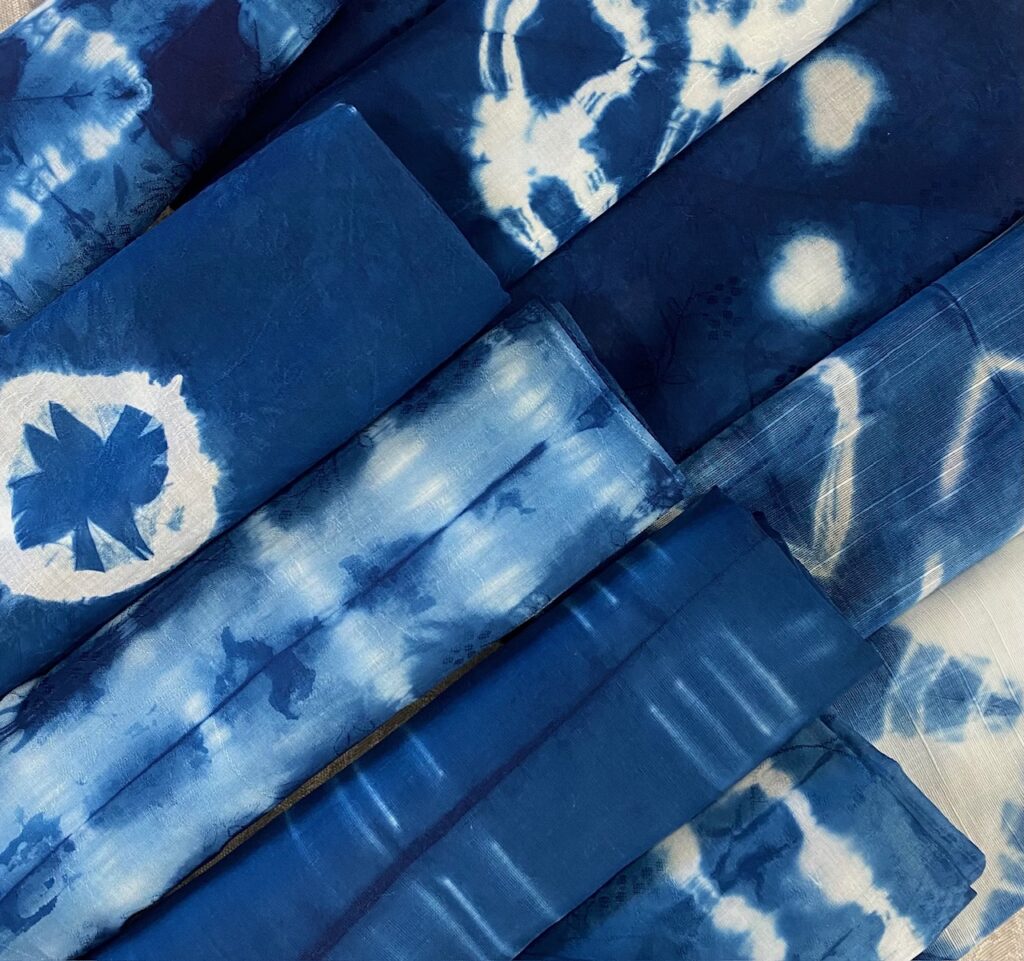 「絞る・挟む・畳む」など防染の技法を使い、